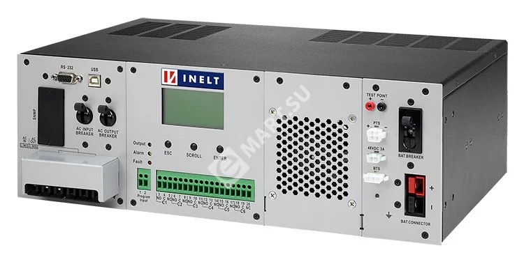 Благодаря регулируемому току заряда ИБП могут применяться для решения задач с различным временем автономии: от нескольких минут до многих часов. Батареи могут быть установлены отдельно от ИБП, при этом выносной температурный датчик позволяет обеспечить термокомпенсацию зарядного напряжения в соответствии с температурой в отсеке, где установлены батареи. Напряжение цепи постоянного тока составляет 48В, что особенно удобно при применении в телекоммуникационных системах.