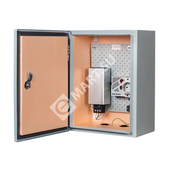 Климатический навесной шкаф МАСТЕР-2УТ-Л IP 66 с электронным гигростатом служащим для защиты оборудования в условиях повышенной влажности (осадки, пар или близость к любым водоемам) Предназначен для использования в любых климатических условиях на улице (-55°С +50°С)