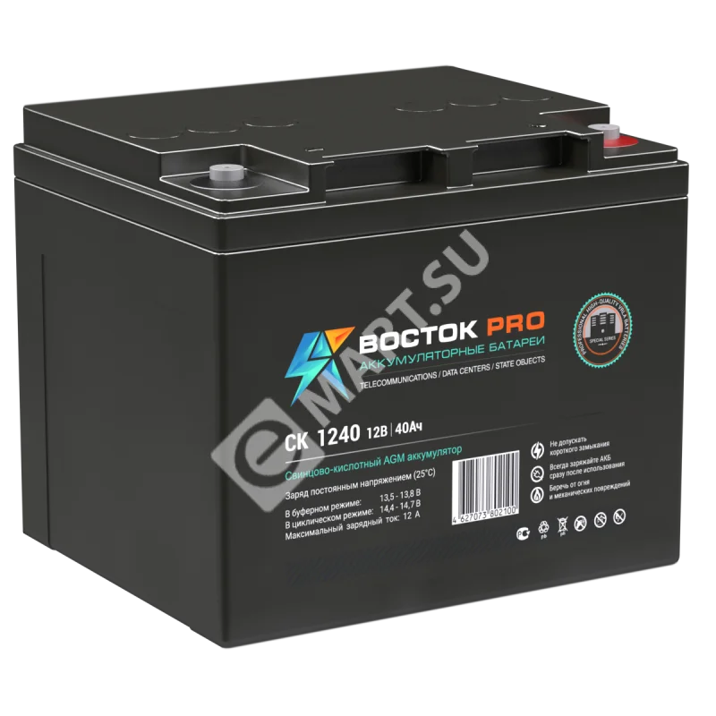 Свинцово-кислотные аккумуляторы ВОСТОК серии CK предназначены для использования в системах бесперебойного питания, резервного энергоснабжения, автономных энергосистемах. Изготовлены по AGM технологии (электролит, абсорбированный в стекловолоконном сепараторе), являются герметизированными и необслуживаемыми, со сроком службы в буферном режиме 10 лет (от 5 до 26 Ач – 5 лет). Обладают высокими разрядными и эксплуатационными характеристиками благодаря использованию в составе электролита и намазной пасты специальных добавок, препятствующих коррозии и замедляющих процесс старения.