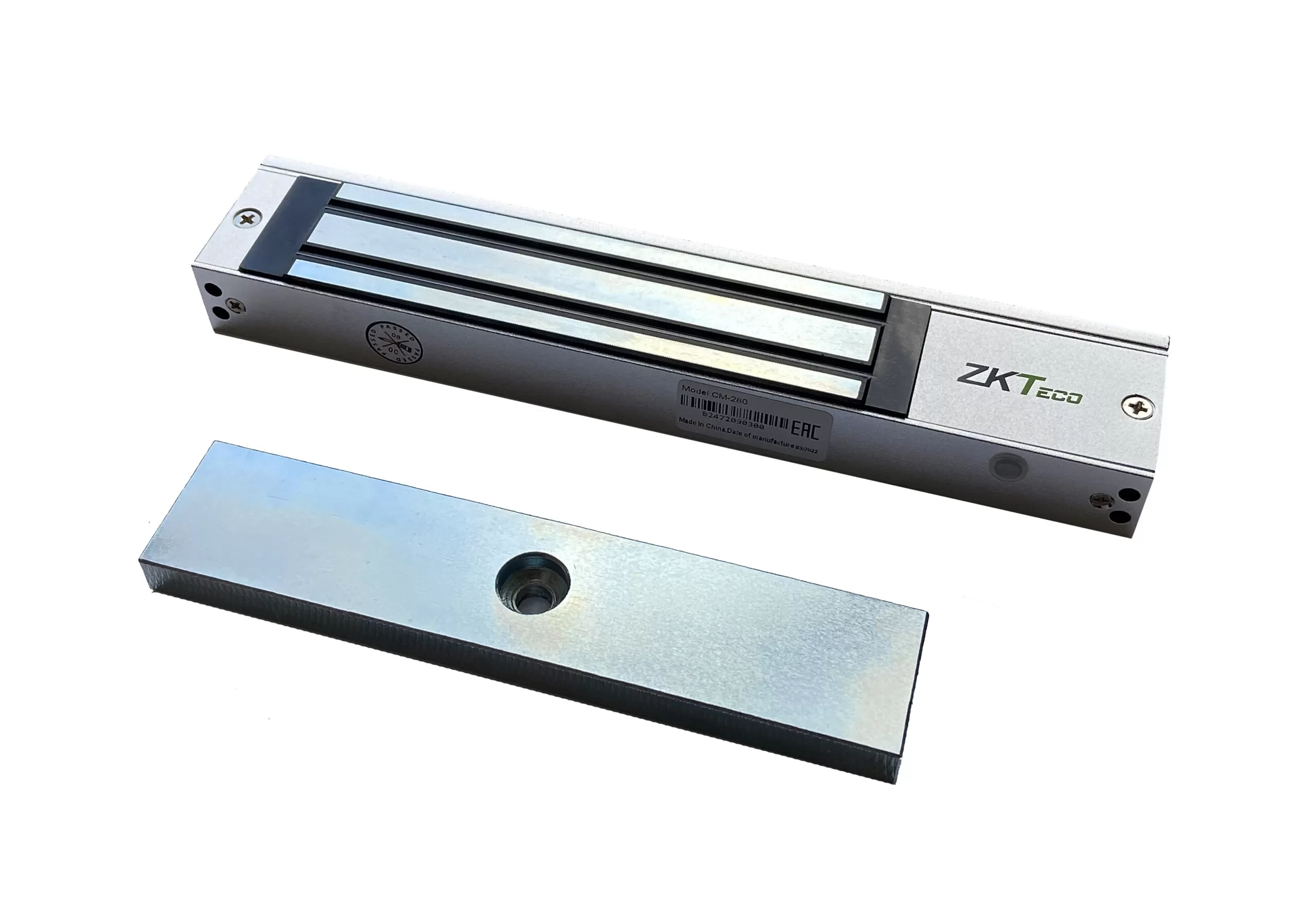 Электромагнитный замок ZKTeco CM-280 имеет силу удержания 280 кг и предназначен для запирания дверей систем контроля доступа и эвакуационных выходов.