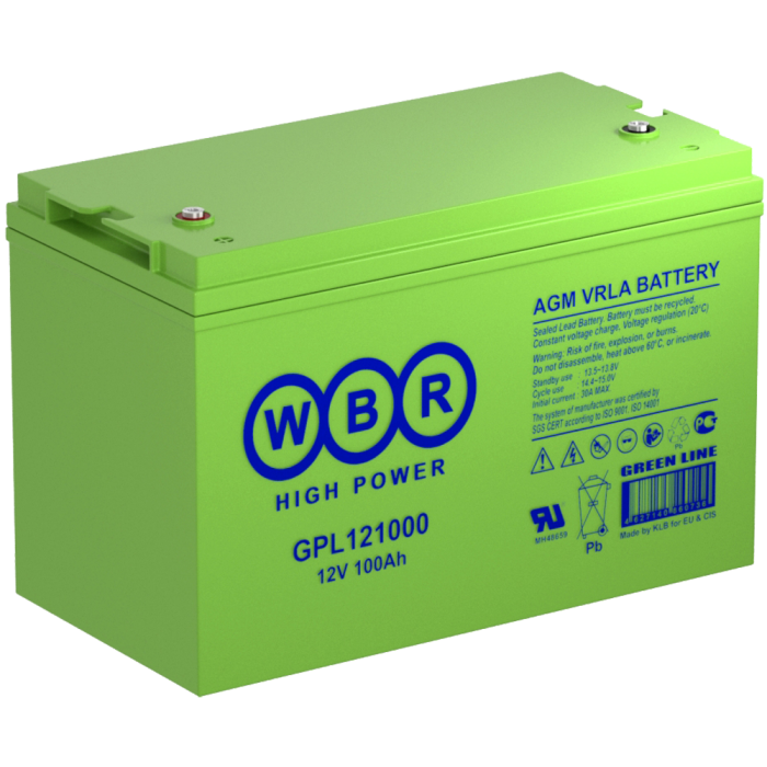 Аккумулятор WBR GPL121000 - герметизированная, выполненная по технологии AGM, аккумуляторная батареи общего применения со сроком службы 12 лет в буферном режиме. Эта высокоэффективная, перезаряжаемая батареи, не требующая обслуживания в течение всего срока службы.