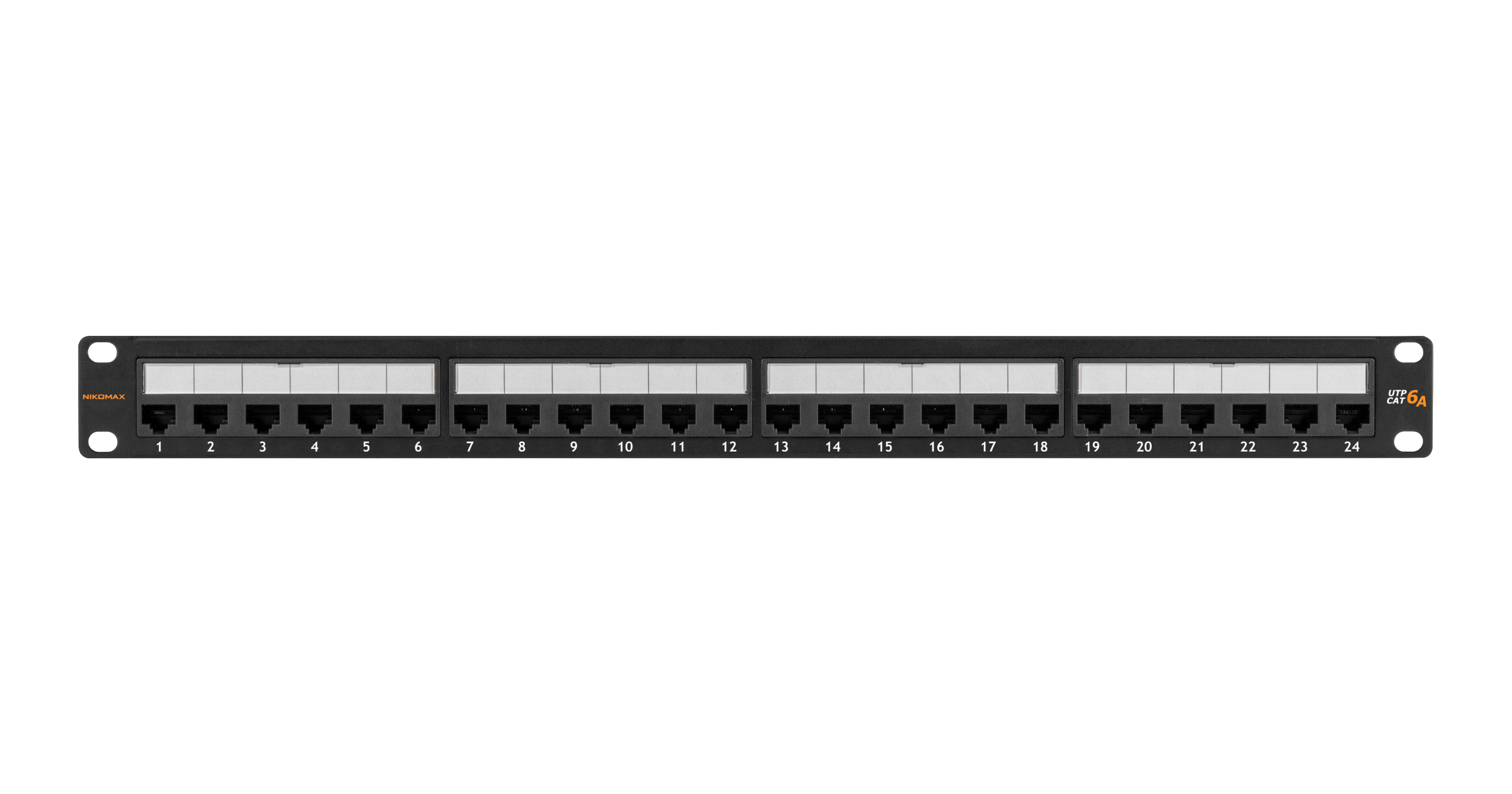 Коммутационная панель NIKOMAX 19", 1U, 24 порта, Кат.6a (Класс Ea), 500МГц, RJ45/8P8C, 110/KRONE, T568A/B, неэкранированная, с органайзером, черная - гарантия: 5 лет расширенная / 25 лет системная