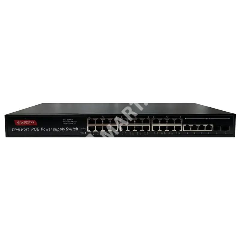 HN-POE4224 – неуправляемый POE коммутатор на 30 портов, 24 из которых с поддержкой технологии POE стандарта 802.3af/at (Type A) 100 Мбит. Максимально поддерживаемая мощность подключаемых устройств составляет 30 Вт на каждый порт. Максимальная суммарная мощность всех подключенных устройств должна быть не больше чем 450 Вт. Дополнительно присутствуют 4 LAN порта с максимальной скоростью до 1000 Мбит и 2 SFP порта.