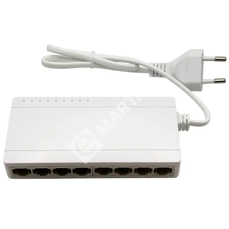 - 8 портов Fast Ethernet: Позволяет подключить до восьми устройств, что идеально подходит для небольших офисов, домашних сетей и систем видеонаблюдения с несколькими IP-камерами.