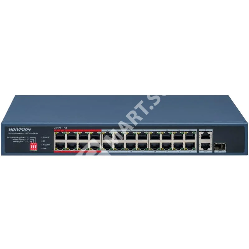 Управляемый PoE-коммутатор Hikvision DS-3E0326P-E/M(C) с 24 портами PoE и увеличенной дальностью передачи