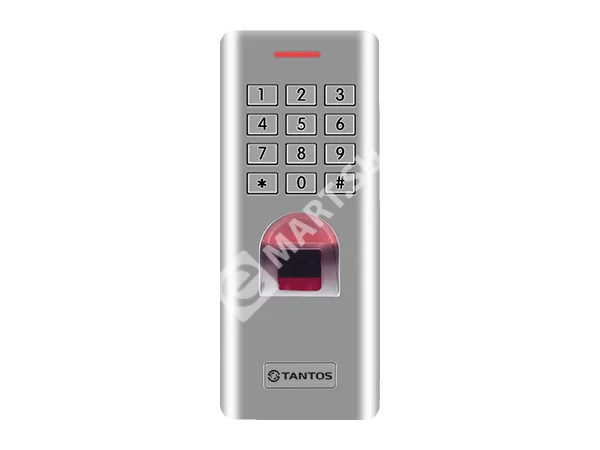 TANTOS TS-KBD-BIO - пыле-, влаго-, вандалозащищённая кодонаборная панель со встроенным контроллером доступа, считывателем отпечатков и выходом с интерфейсом Wiegand Предназначена как для создания автономных систем контроля доступа так и для использования в составе сетевых СКУД в качестве считывающего устройства. Поддерживается двухфакторная идентификация (отпечаток + код / отпечаток или код / только отпечаток / только код).